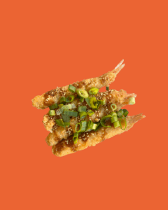 Dybstegt torpedo rejer (4 stk.) // Fried torpedo Shrimps (5 pieces)